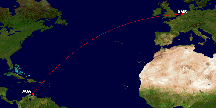 Though located in the Caribbean, Aruba is part of the Kingdom of the Netherlands, making this transatlantic route a domestic one.