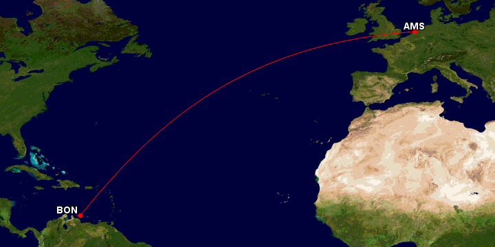 10. Bonaire (BON) to Amsterdam (AMS), Netherlands