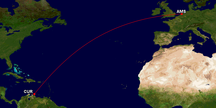 9. Curaçao (CUR) to Amsterdam (AMS), Netherlands