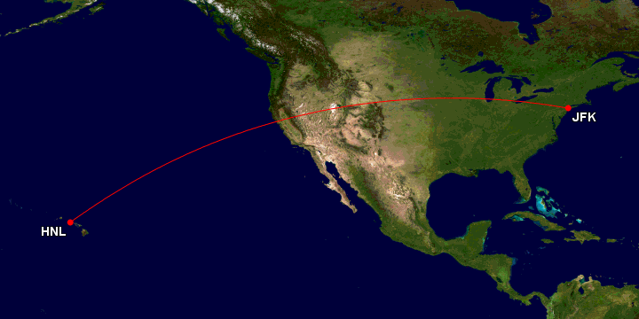 6. New York (JFK) to Honolulu (HNL), United States