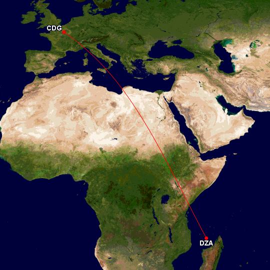 5. Paris Charles de Gaulle (CDG) to Mayotte (DZA), France